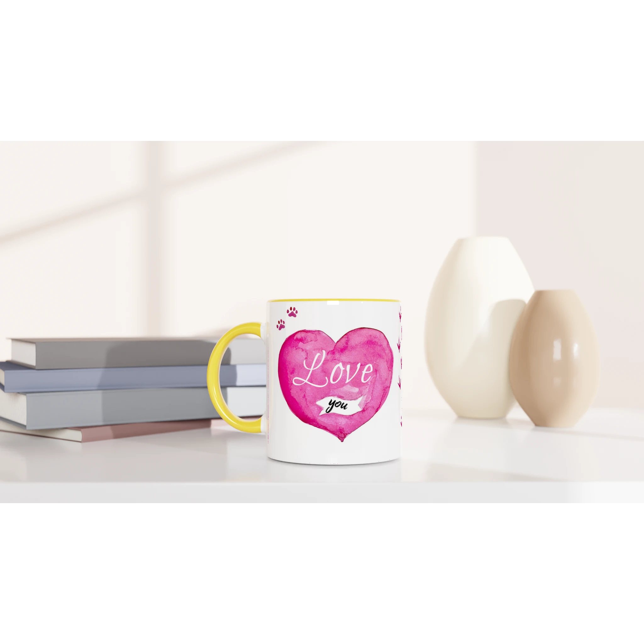 Support a noble cause while enjoying your favorite beverage with our exclusive Charity Mug designed by Caroline le Bourgeois. This exquisite 11oz ceramic mug showcases the heartfelt 'Love You, Love You More' motto, celebrating the bond with your loved ones and contributing to the Caenhill Countryside Centre Farm Animal Charity.